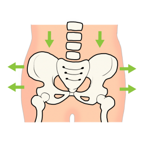 骨盤の中には子宮や内臓が収まり、下から支えているので、骨盤が歪むことにより腹圧が下がり、胃下垂やポッコリお腹の原因になります。
