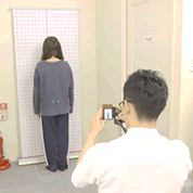 姿勢の状態を写真に撮り、歪み方を細かくチェックします。
